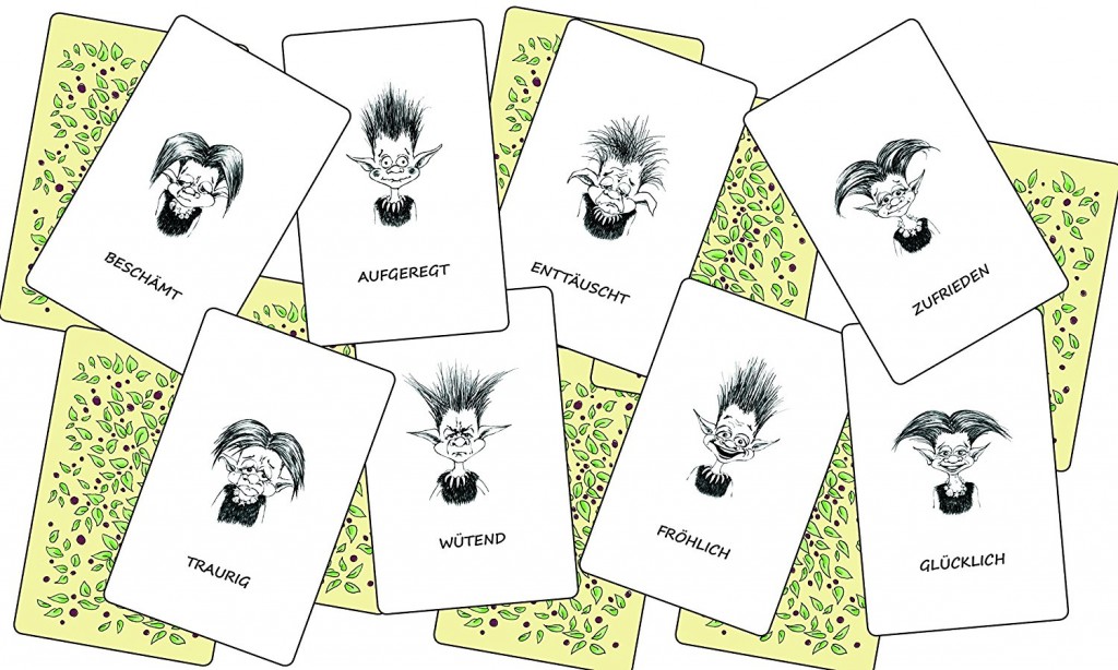 Die Gefühlskarten wurden für den Einsatz im therapeutischen Setting entwickelt. Das Erkennen von Emotionen, der Emotionsausdruck und die Emotionsregulation werden mit Hilfe der Karten spielerisch trainiert. Die Karten können mit anderen Materialien kombiniert werden, z.B. zur Erweiterung des therapeutischen Spiels „Wie peinlich ist das denn?!“. Die Gefühlskarten werden für die Durchführung des traumaspezifischen Behandlungsmanuals „Das Seefahrercamp 6-10 – ein Behandlungsmanual für Kinder mit Traumafolgestörungen“ benötigt. Mit den Trollkarten zu den Gefühlen: glücklich, fröhlich, traurig, wütend, zufrieden, verliebt, ekelig, beschämt, aufgeregt, überrascht, stolz, schuldig, hilflos, enttäuscht, einsam, ängstlich.